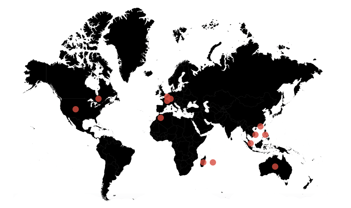 France (Head-Office), Luxembourg, Belgium, US, Canada, Morocco, Madagascar, Mauritius, Vietnam, Singapore, Hong-Kong, The Philippines and Australia.
